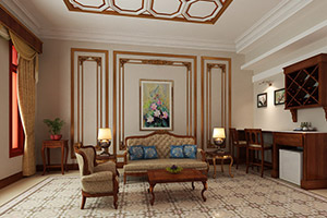 The spacious Palace Suite with state of the art amenities, comfortable mattress with king Bed, velvety sofa, handmade wooden furniture, Italian bathroom equipment, Spain tiles and private balcony, perfect from the extensive living room to the bedroom, it’s perfect for family travelling with children.